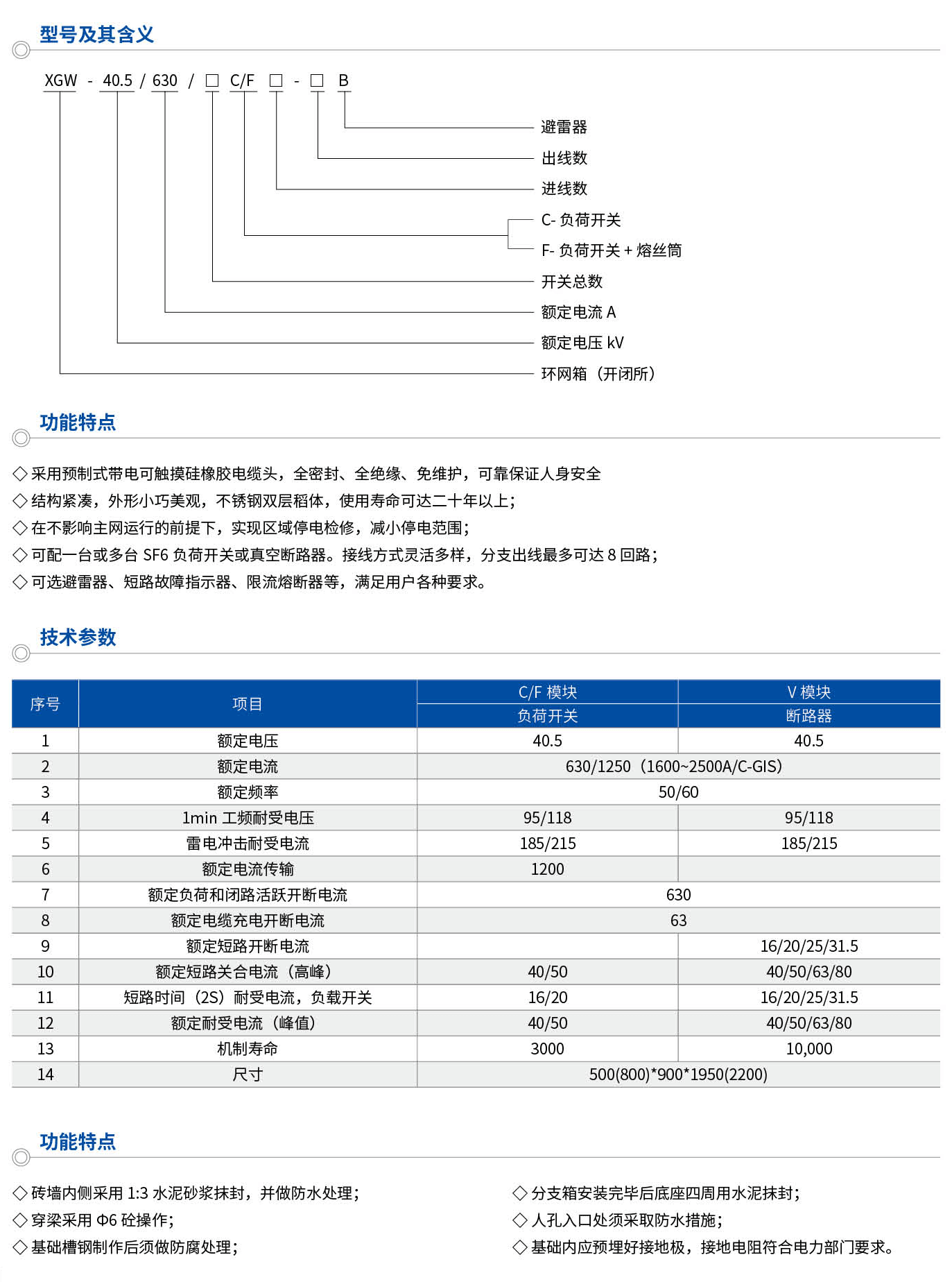 功能特点:采用预制式带电可触摸硅橡胶电缆头,全密封、全绝缘、免维护,可靠保证人身安全.结构紧凑,外形小巧美观,不锈钢双层稻体,使用寿命可达二十年以上;在不影响主网运行的前提下,实现区域停电检修,减小停电范围;可配一台或多台SF6负荷开关或真空断路器。接线方式灵活多样,分支出线可多达8回路;可选避雷器、短路故障指示器、限流熔断器等,满足用户各种要求。